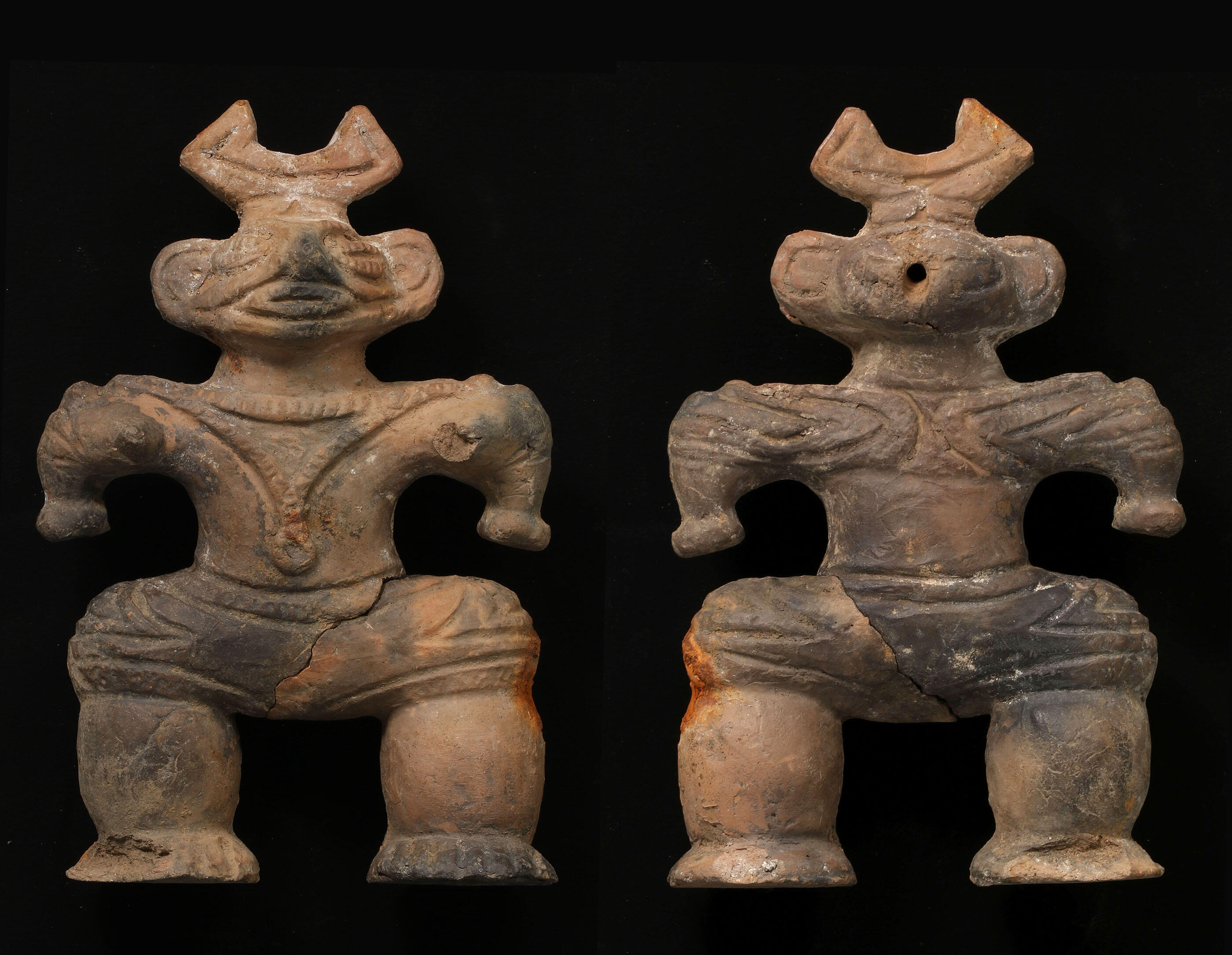 戦後の復興期から高度経済成長期にかけて、宮城県白石市立中学校の実務学級(特別支援学級)で職業教育の一環として生徒たちが製作し、「ふえるの神様」と称して販売されていたもので、これほど精巧なのは、製作を指導した元東京郷土資料陳列館初代学芸員の片倉信光が当時所蔵していた宮城県出土の土偶から直接象(かたど)ったからである。